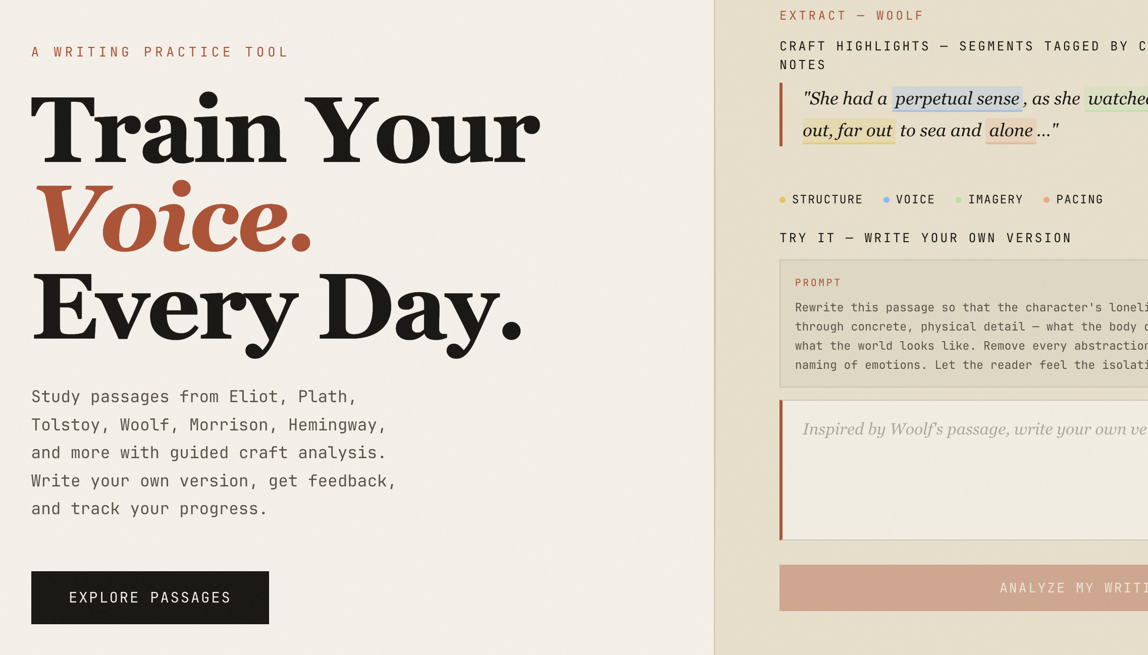 Write a short passage and discover which renowned author your prose most resembles. Free prose analysis powered by AI.