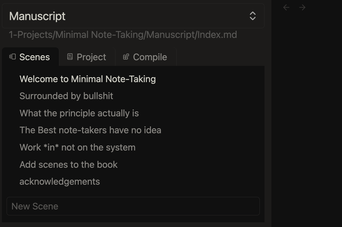 So, to make sure I’m taking advantage of this, I’ve built up a few systems in Obsidian (rather than another solution) to handle the stickier parts of book writing.